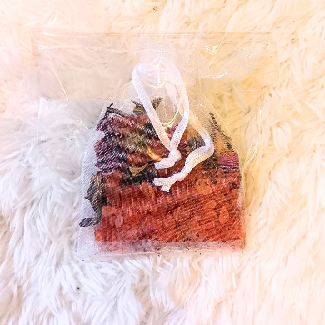 保温や肌に良いとされるヒマラヤ岩塩とハーブでできていますので、色はうっすら 香りはほんのり のからだに優しいバスソルト各1回分です。